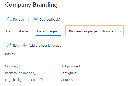 You can additionally customize the appearance of the Microsoft 365 sign-in page, depending on language detected by a web browser.