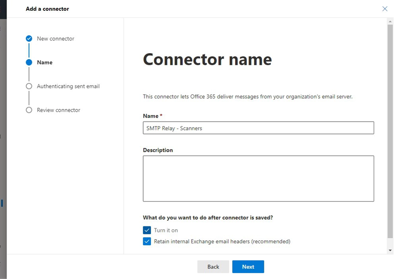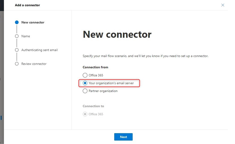 Click on Add a connector to create a new connector and choose Your organization’s email server