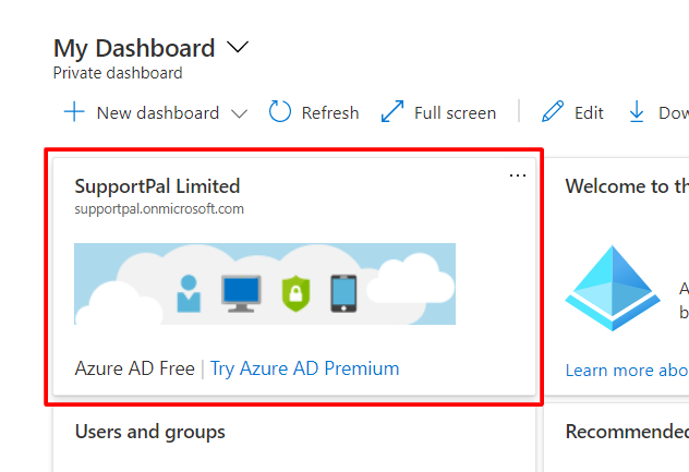 3. The Azure Active Directory admin center will show. Click on your company name in the dashboard.